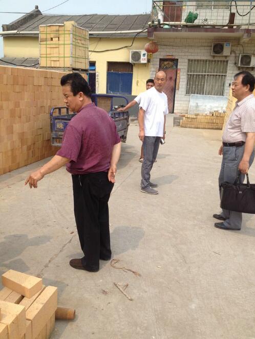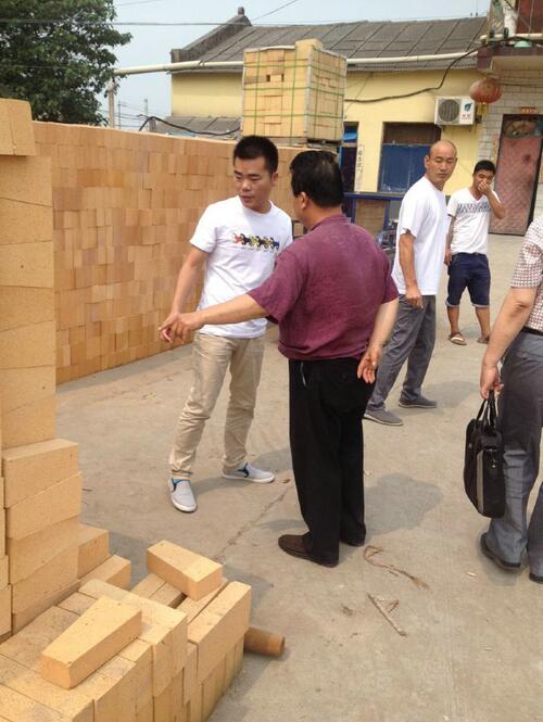 客戶(hù)在公司成品車(chē)間駐足指導(dǎo)耐火磚的使用和配套使用的方法。