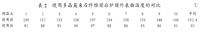 通過(guò)使用多晶莫來(lái)石纖維,可以取得一定的經(jīng)濟(jì)效益,而且在很大程度上改善了操作環(huán)境,同時(shí)對(duì)加熱爐爐頂也有一定的保護(hù)作用,可以延長(zhǎng)其使用壽命。
