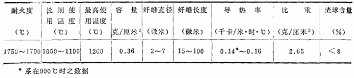 美國(guó)在三十年代研制成這種材料后,在英國(guó)、西德、日本和蘇聯(lián)也都得到了相應(yīng)的發(fā)展。美國(guó)已有60%以上的熱處理爐采用了這種材料,日本的耐火纖維年產(chǎn)量在2000噸以上,并以每年30%的速度遞增。我國(guó)有幾十個(gè)廠生產(chǎn)以焦寶石為原料的耐火纖維,大連耐火材料廠生產(chǎn)的硅酸鋁纖維的物理性能見(jiàn)表1、表2所示。