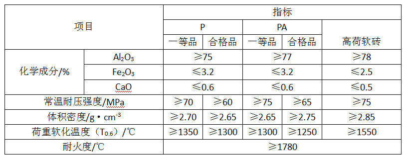 建材行業(yè)標(biāo)準(zhǔn)JC350—1993《水泥窯用磷酸鹽結(jié)合高鋁質(zhì)磚》按結(jié)合劑分為兩個(gè)品種。磷酸鹽高鋁質(zhì)磚結(jié)合劑濃度為42.5%〜50%磷酸溶液。代號(hào)為P,鎖縫磚代號(hào)為PC。磷酸鋁結(jié)合高鋁質(zhì)耐磨磚(簡(jiǎn)稱耐磨磚), 結(jié)合劑為工業(yè)磷酸、工業(yè)氫氧化鋁配制成的磷酸鋁溶液,摩爾比為:Al2O3: P2O5 =1:3.2,代號(hào)為 PA。