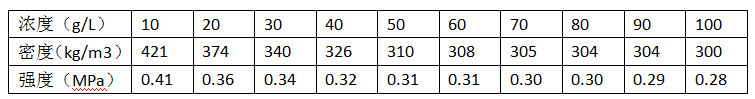 起泡劑濃度與制品密度及強(qiáng)度的關(guān)系