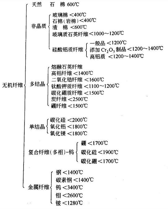 耐火纖維的分類及使用溫度如圖: