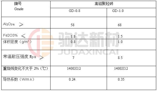 (2)高鋁聚輕磚:高鋁聚輕磚是輕質(zhì)高鋁磚系列的一個新型的保溫隔熱磚,主要采用高鋁熟料和高純粘土,用聚苯乙烯泡沫球填充,經(jīng)燒成燃盡制成。