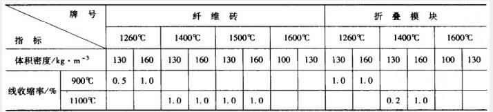 表2 耐火纖維磚主要技術(shù)指標(biāo)